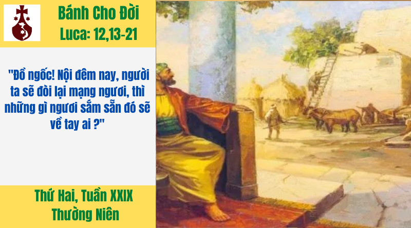 Lời Chúa hôm nay, là một dẫn chứng cụ thể cho mỗi người chúng ta. Việc Chúa Giê-Su muốn cảnh tỉnh và muốn chúng ta biết được, rằng đâu mới thật sự là “ Tài Sản” đích thực nhất của chúng ta. Việc làm giàu, tích trữ vật chất nơi thế gian vốn được biết chỉ là tạm bợ, và nhất thời. Hơn hết, chúng ta luôn nhận thức, và nhắc nhở chính mình luôn tích góp cho cuộc sống nơi quê thật. Nhưng điều này, vốn ít người nghĩ đến. Khi mà anh chị em chúng ta ,có thể nhận thấy được, sự đi xuống của xã hội vật chất ngày nay. Chủ nghĩa vô thần dần được gieo trong tư tưởng, và thay vào đó là việc thờ tiền bạc, trụy lạc, tệ nạn…và những điều này phần lớn đánh vào giới trẻ trong xã hội ngày nay. Bởi lẽ, giới trẻ là tương lai của giáo hội và đất nước.