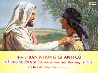 Điều kện theo Chúa vẫn không thay đổi: “Về bán của cải cho người nghèo, rồi đến theo Thầy” (Mc 10, 21). Điều kiện không thay đổi, bắt buộc con người đổi thay. Con người suy nghĩ lại khi cầm giữ của cải. Nếu để hưởng thụ cho riêng mình, họ đánh mất điều kiện theo Thầy. Nếu muốn theo Thầy trên con đường trọn lành thì con người cần học từ bỏ.