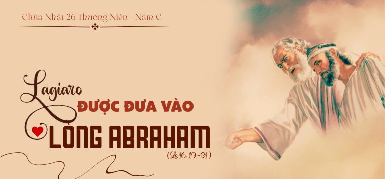 19 “Có một ông nhà giàu kia, mặc toàn lụa là gấm vóc, ngày ngày yến tiệc linh đình.20 Lại có một người nghèo khó tên là La-da-rô, mụn nhọt đầy mình, nằm trước cổng ông nhà giàu,21 thèm được những thứ trên bàn ăn của ông ấy rớt xuống mà ăn cho no. Lại thêm mấy con chó cứ đến liếm ghẻ chốc anh ta.22Thế rồi người nghèo này chết, và được thiên thần đem vào lòng ông Áp-ra-ham. Ông nhà giàu cũng chết, và người ta đem chôn.