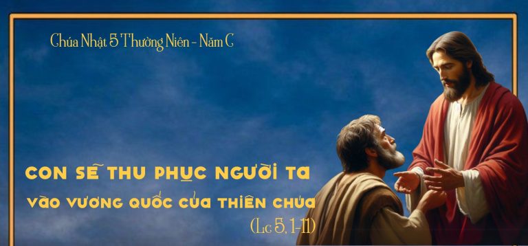 1 Một hôm, Đức Giê-su đang đứng ở bờ hồ Ghen-nê-xa-rét, dân chúng chen lấn nhau đến gần Người để nghe lời Thiên Chúa.2Người thấy hai chiếc thuyền đậu dọc bờ hồ, còn những người đánh cá thì đã ra khỏi thuyền và đang giặt lưới.3 Đức Giê-su xuống một chiếc thuyền, thuyền đó của ông Si-môn, và Người xin ông chèo thuyền ra xa bờ một chút. Rồi Người ngồi xuống, và từ trên thuyền Người giảng dạy đám đông.4 Giảng xong, Người bảo ông Si-môn: “Chèo ra chỗ nước sâu mà thả lưới bắt cá.”5 Ông Si-môn đáp: “Thưa Thầy, chúng tôi đã vất vả suốt đêm mà không bắt được gì cả. Nhưng vâng lời Thầy, tôi sẽ thả lưới.”6 Họ đã làm như vậy, và bắt được rất nhiều cá, đến nỗi hầu như rách cả lưới.7 Họ làm hiệu cho các bạn chài trên chiếc thuyền kia đến giúp. Những người này tới, và họ đã đổ lên được hai thuyền đầy cá, đến gần chìm.8 Thấy vậy, ông Si-môn Phê-rô sấp mặt dưới chân Đức Giê-su và nói: “Lạy Chúa, xin tránh xa con, vì con là kẻ tội lỗi! “9Quả vậy, thấy mẻ cá vừa bắt được, ông Si-môn và tất cả những người có mặt ở đó với ông đều kinh ngạc.10 Cả hai người con ông Dê-bê-đê, là Gia-cô-bê và Gio-an, bạn chài với ông Si-môn, cũng kinh ngạc như vậy. Bấy giờ Đức Giê-su bảo ông Si-môn: “Đừng sợ, từ nay anh sẽ là người thu phục người ta.”11 Thế là họ đưa thuyền vào bờ, rồi bỏ hết mọi sự mà theo Người.