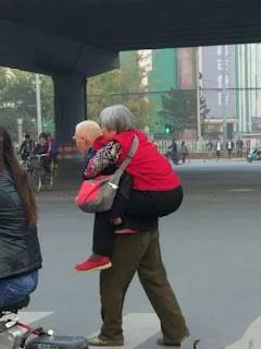 7 giờ sáng – giờ cao điểm – các em học sinh như những đàn bướm trắng tung tăng đến trường, xe cộ bắt đầu tấp nập, kẻ đi chợ, người đi đến công sở, nhộn nhịp ồn ào … Giữa cảnh hổn loạn ấy, bên kia đường một ông lão áo phong phanh, quần ngắn, chân đất cõng một bà lão áo nâu, nhỏ nhắn, ốm yếu trên vai (sau này tôi mới biết ông cõng bà đi đi về về để châm cứu trị bệnh) như chẳng quan tâm đến mọi vật chung quanh. Ông đi chầm chậm, thỉnh thoảng lấy tay quẹt mồ hôi trán, ông nói nho nhỏ với bà một câu gì đó, môi bà liền nở một nụ cười móm mém … Nhìn ông cõng bà đi khuất sau công viên, mắt tôi bỗng thấy cay cay …