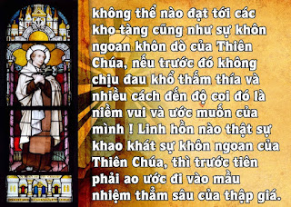 “Thánh giá chính là cửa ngõ phải qua để rồi vào kho tàng khôn ngoan của Thiên Chúa”. Thánh giá của tình yêu mà chúng con vẫn sợ hãi khi mang vác, xin ban thêm cho chúng con lòng tin yêu như Chúa hứa ban: “Ơn Ta đủ cho ngươi” (2 Cor 12, 9).