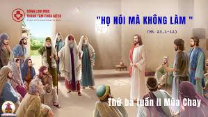 Trong Tin mừng hôm nay, Chúa Giêsu cũng phê phán các kinh sư và người Pharisêu về một thái độ như thế, họ là những con người “ngôn hành bất nhất”, nói mà không làm hay nói một đàng làm một nẻo. Là những kinh sư, họ có nghĩa vụ và thẩm quyền chính đáng để giải thích và hướng dẫn dân chúng thực thi những lệnh truyền của Thiên Chúa. Chính Chúa Giêsu cũng tôn trọng điều đó và truyền cho dân chúng làm như thế: “Tất cả những gì họ nói, anh em hãy làm hãy giữ”. Tuy nhiên, không vì thế họ có quyền miễn trừ cho mình khỏi giữ các luật ấy và thêm vào “những gánh nặng” cho người ta vì lợi ích của riêng mình. Đó chính là điều mà Chúa Giêsu đã gắt gao lên án họ cùng với lối sống giả hình “làm mọi việc cốt để cho thiên hạ thấy”.