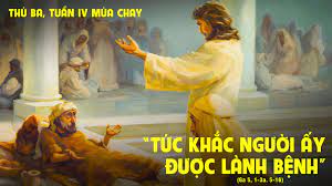 Hôm đó lại là ngày sa-bát. Người Do-thái mới nói với kẻ được khỏi bệnh: “Hôm nay là ngày sa-bát, anh không được phép vác chõng!” Nhưng anh đáp: “Chính người chữa tôi khỏi bệnh đã nói với tôi: ‘Anh hãy vác chõng mà đi!’” Họ hỏi anh: “Ai là người đã bảo anh: ‘Vác chõng mà đi’?”. Nhưng người đã được khỏi bệnh không biết là ai. Quả thế, Đức Giê-su đã lánh đi, vì có đám đông ở đấy. Sau đó, Đức Giê-su gặp người ấy trong Đền Thờ và nói: “Này, anh đã được khỏi bệnh. Đừng phạm tội nữa, kẻo lại phải khốn hơn trước!” Anh ta đi nói với người Do-thái: Đức Giê-su là người đã chữa anh khỏi bệnh. Do đó, người Do-thái chống đối Đức Giê-su, vì Người hay chữa bệnh ngày sa-bát.