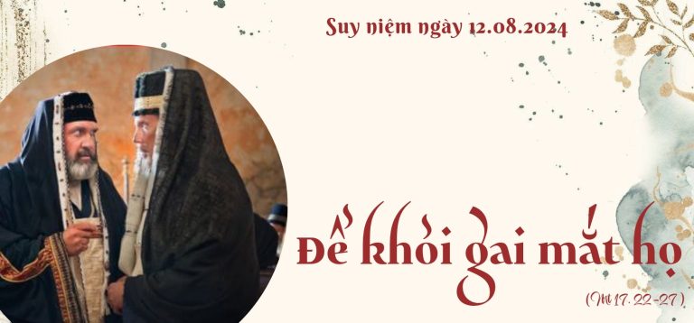 Ai là người muốn trả tiền thuế, đặc biệt khi bạn nghĩ chúng có thể là điều vô lý và bất công? Đức Giêsu và các môn đệ đang đứng trước vấn đề trốn thuế mà những người thu thuế đưa ra. Khi được hỏi về việc trả thuế đền thờ, Đức Giêsu nói với các môn đệ: chúng ta phải trả thuế để không gây cớ vấp phạm cho người khác. Trong thực tế, chúng ta phải đi xa hơn bổn phận của mình để tỏ cho người khác thấy những gì họ phải làm. Câu Kinh thánh không hề có ý muốn đưa ra sự sỉ nhục hay sự phiền phức nào; nhưng có ý nói đừng gây cản trở trên đường của người khác, khiến họ phải vướng chân hay vấp té. Đức Giêsu cũng không cho phép chính mình làm bất cứ điều gì có thể làm gương xấu cho người khác. Bạn có lẩn tránh những bổn phận khó khăn trái ý không?