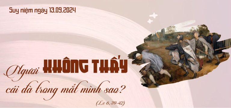 Bạn có sáng suốt, đặc biệt trong sự hiểu biết về tội lỗi và sự cần thiết cho mỗi người chúng ta để nhìn thấy mình đúng như Thiên Chúa nhìn chúng ta không – với những lỗi lầm, yếu đuối, và sức mạnh không? Hai dụ ngôn của Đức Giêsu quy chiếu về tầm nhìn thiển cận ám chỉ câu châm ngôn: “Mắt không nhìn thấy, người ta sẽ sống buông thả!” (Cn 29,18). Chúng ta có thể học được điều gì từ sự minh họa của người dẫn đường mù quáng và con mắt hư (cái đà trong mắt) không? Con mắt bệnh hoạn mà không chữa trị và sự dẫn dắt mù quáng chỉ có thể kết thúc bằng đau khổ và tai họa cho chúng ta! Chúng ta chỉ có thể giúp đỡ và dạy dỗ người khác những gì chúng ta đã học và lãnh nhận từ những thầy dạy và người hướng dẫn khôn ngoan. Làm thế nào chúng ta có thể giúp người khác chế ngự lỗi lầm của họ trong khi chúng ta lại không nhìn thấy lỗi lầm và hiểu sai của chính mình? Tất cả chúng ta đều cần đến vị Thầy có thể giúp chúng ta khắc phục những điểm mù quáng và sự thất bại của tội lỗi, yếu đuối và ngu dốt của chính mình.