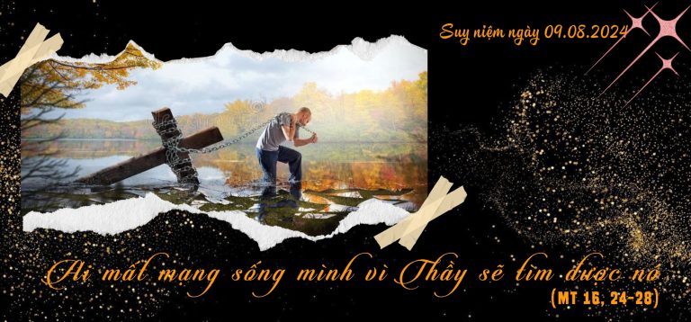 24 Rồi Đức Giê-su nói với các môn đệ: “Ai muốn theo Thầy, phải từ bỏ chính mình, vác thập giá mình mà theo.25Quả vậy, ai muốn cứu mạng sống mình, thì sẽ mất; còn ai liều mất mạng sống mình vì Thầy, thì sẽ tìm được mạng sống ấy.26 Vì nếu người ta được cả thế giới mà phải thiệt mất mạng sống, thì nào có lợi gì? Hoặc người ta sẽ lấy gì mà đổi mạng sống mình?27 “Vì Con Người sẽ ngự đến trong vinh quang của Cha Người, cùng với các thiên thần của Người, và bấy giờ, Người sẽ thưởng phạt ai nấy xứng việc họ làm.28Thầy bảo thật anh em: trong số người có mặt ở đây, có những kẻ sẽ không phải nếm sự chết trước khi thấy Con Người đến hiển trị.”