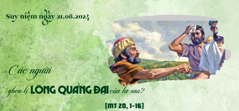 Suy niệm: Công việc, tiền lương, lợi ích, và thất nghiệp có thể nói với chúng ta điều gì về nước Thiên Chúa? Trong dụ ngôn những người được mướn làm vườn nho, chúng ta thấy lòng quảng đại và thương xót vô cùng của Thiên Chúa (Mt 20,1-16). Thất nghiệp, mất việc làm, và không có khả năng kiếm đủ tiền để sinh sống và nuôi gia đình là một thảm họa lớn. Vào thời Đức Giêsu, người ta phải đứng đợi ngoài đường mỗi ngày cho tới khi có ai đó mướn họ làm việc cho ngày hôm đó. Ngày nào không có ai thuê họ làm việc, ngày đó trên bàn ăn của gia đình họ chẳng có gì cả. Những người làm việc cả ngày nhận được tiền công đã than trách rằng ông chủ trả công cho người vào làm sau cũng bằng số tiền công của họ. Rõ ràng, ông chủ đã mướn họ lúc trời đã chiều để họ không trở về nhà với đôi bàn tay trắng và cái bụng rỗng tuếch.